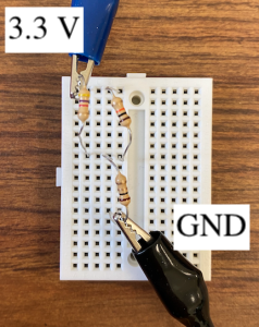 - Q2.6: What can you conclude about the way voltage works in series circuits? (Remember that the total output voltage now is 3.3 V since you are using the 3.3 V port.)